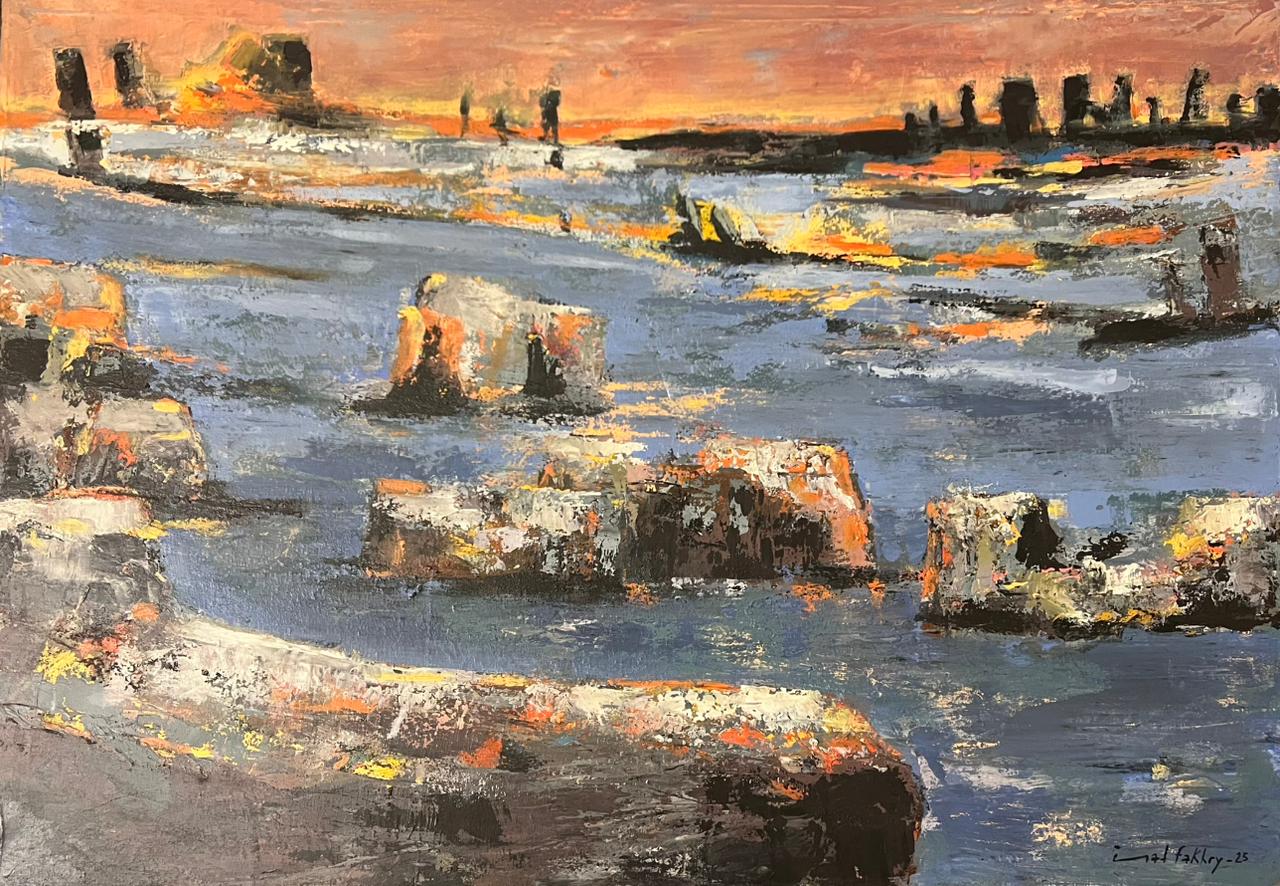 Imad Fakhry participated in several solo and group exhibitions in Lebanon and abroad, including in Switzerland, the United Kingdom, and the United States. In 2000, he was awarded the ABN AMRO Bank Prize, and in 2007, he was nominated for the Young Creative Awards at the Unesco in Beirut. In 2008, he represented Lebanon with his etchings and engravings at the Triennial of Rhodes, and in 2016, he won the Dr. Chaouki Chamoun prize.