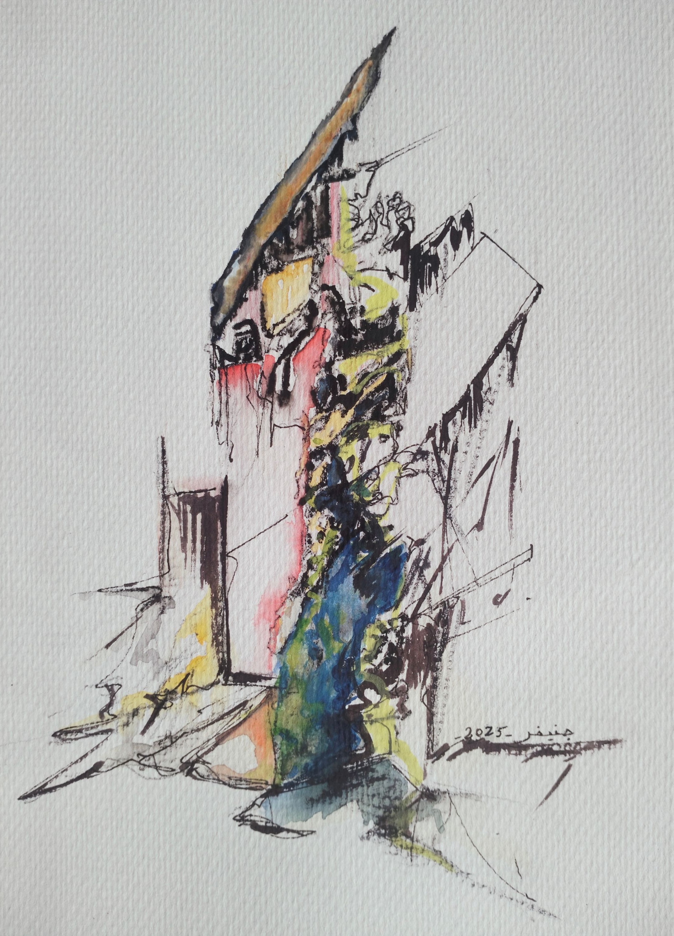 Jennifer Haddad is a Beirut-based multidisciplinary artist and casting producer. She is a graduate of audiovisual studies from ALBA. Her painting practice developed alongside her work in socially engaged cinema, where long-term immersion in urban environments and lived narratives shaped her visual language.