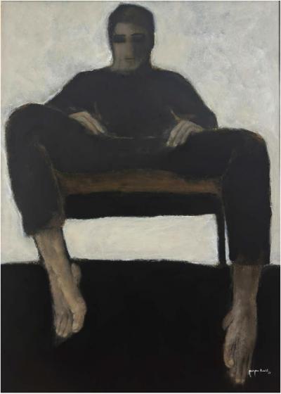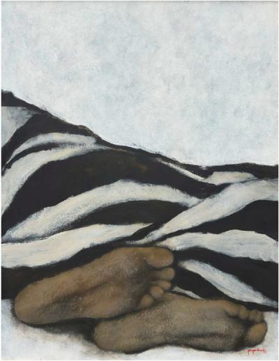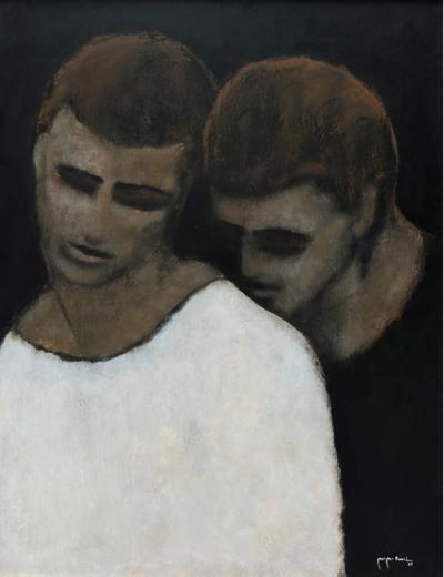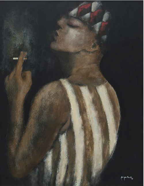 He engages with the human soul in a discourse through his use of transparency and light application of pigments, which allows him to express elements of transience and a connection with the other. In a world that grows increasingly zealous, he recreates his visions on warm fabrics, with figures that are indifferent to the stares and scrutiny of viewers, existing in their own world, lost in their thoughts and feelings. They exist without judgment.