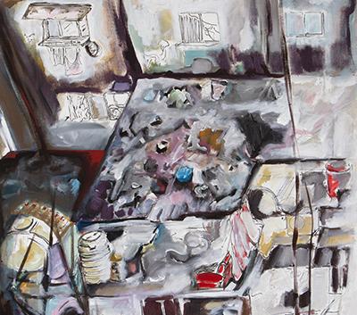Working across painting and image-making, Haddad engages the psychological and spatial traces left by systems of power and marginalization. Her work draws on fragmentation, displacement, and post-traumatic imagery, constructing dense visual fields where personal experience and collective conditions intersect.